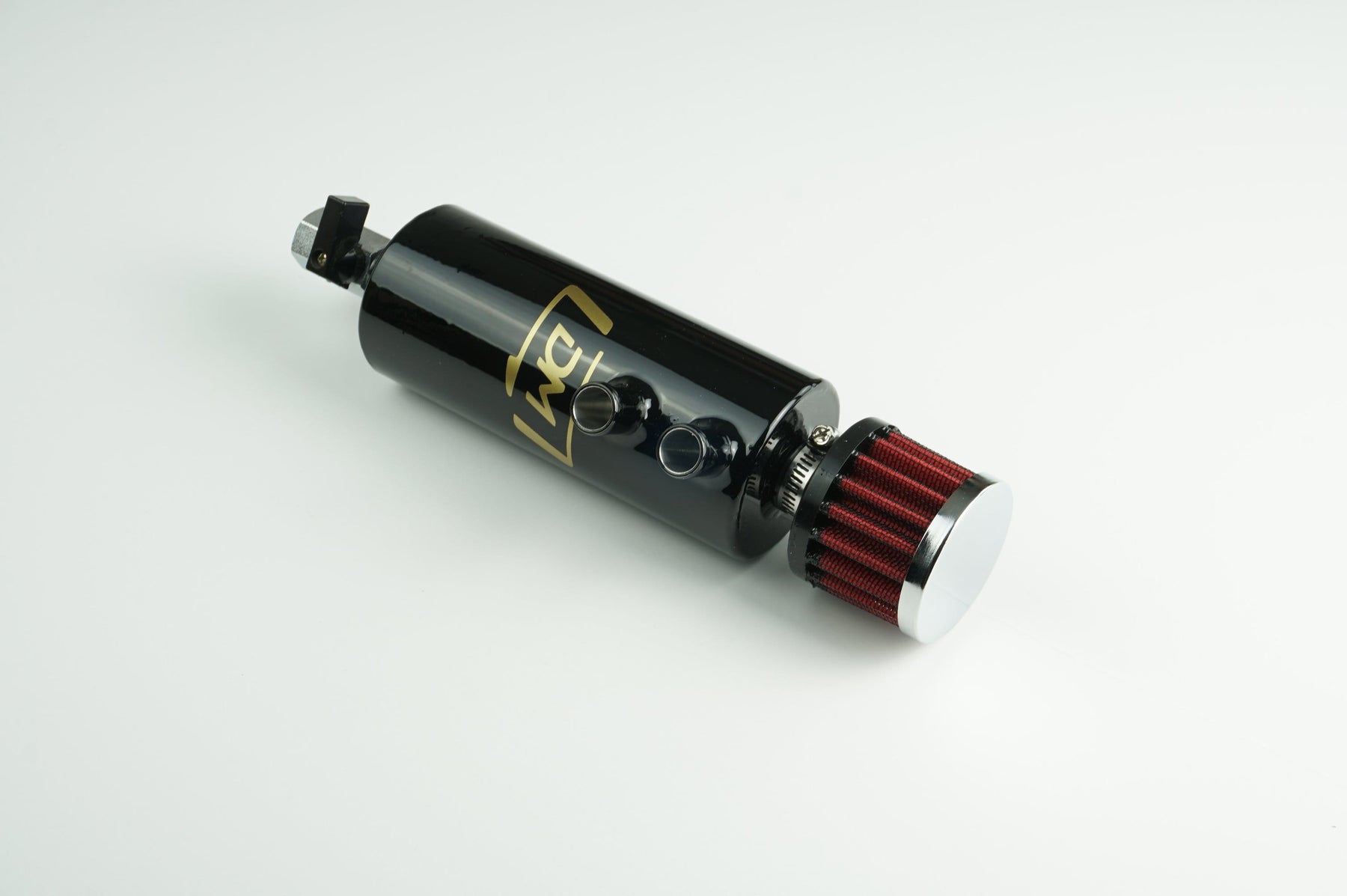 This allows the Damond Motorsports OCC to vent pressure when excess pressure is present in the crankcase. This option contains a VTA breather filter and check valve. The check valve allows one way flow of pressure out of the can, while the filter keeps debris away from the check valve. The filters are completely washable and re-usable.